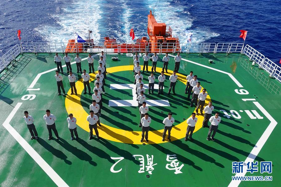 10月24日,“雪龙2”号驶过赤道时,考察队员排成数字“36”图案队形,以此告别北半球,继续向南极挺进。 新华社记者刘诗平摄