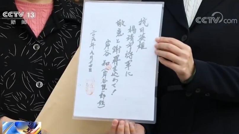 这张写着向抗日英雄杨靖宇将军谢罪、致敬的题字,是今年9月14日,岸谷隆一郎的侄女岸谷和在日本横滨的养老院中写下的。此外,她还写下了一封300余字的谢罪书。上世纪90年代初,岸谷和曾悄悄来中国拜谒过靖宇陵园,作为岸谷家后人,能公开谢罪是她晚年的心愿。
