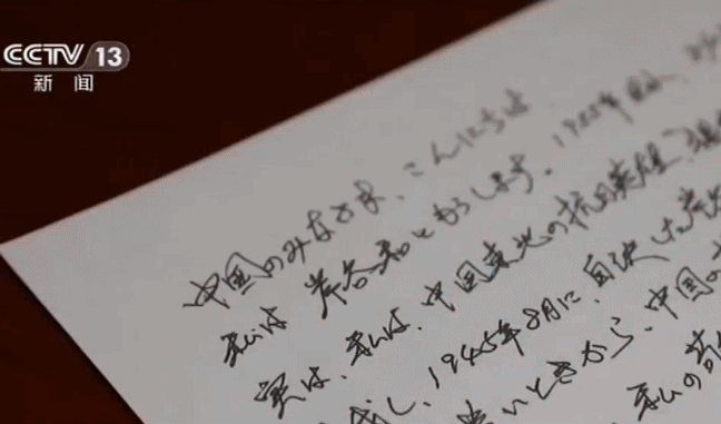 日中口述历史文化研究会常务副会长 李素桢:岸谷和老人在20年前来到这,是以另外的名字来的,她没有敢暴露自己的真实的岸谷这个姓。这次她是以真实的姓名叫岸谷和,而且写了谢罪书和敬意,那样的题字。