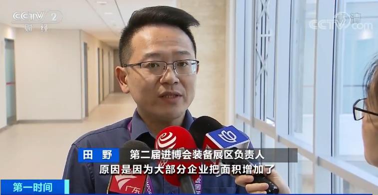 第二届进博会装备展区负责人 田野:相比首届来说,数量方面是减少的,原因是因为大部分企业把面积增加了。全方位展示它们所有系列的产品。