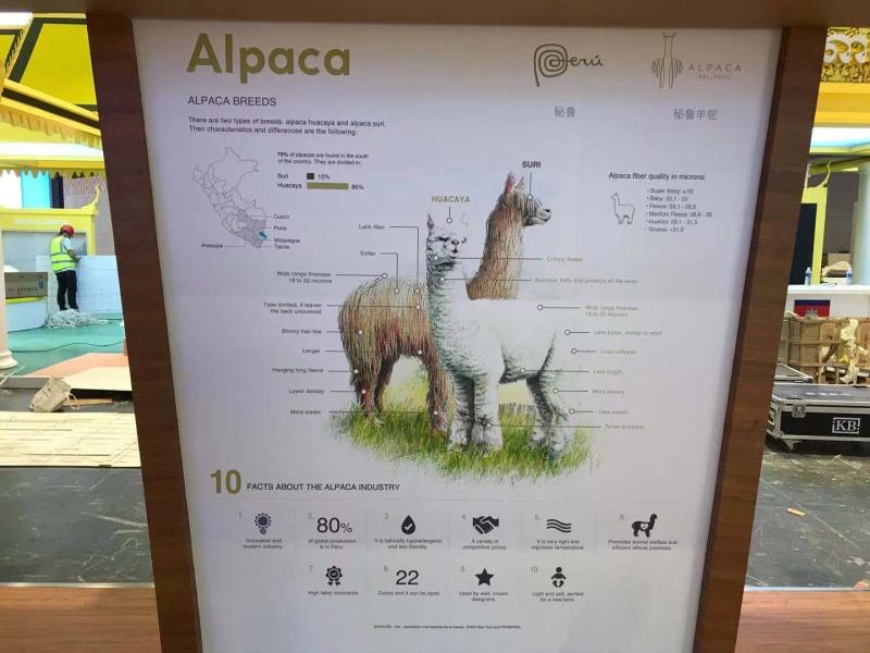 秘鲁国家馆,总体设计充分吸收了秘鲁传统建筑和纺织技艺的精华,其纵横交错的丝线绘制出色彩斑斓的上古神兽与几何图案。秘鲁是全世界羊驼最多的国家,高端纺织品是其特色。去年进博会上,秘鲁国家馆将巨大“羊驼”摆入展馆,成为网红打卡地。今年这一“吸睛”做法将得到延续。