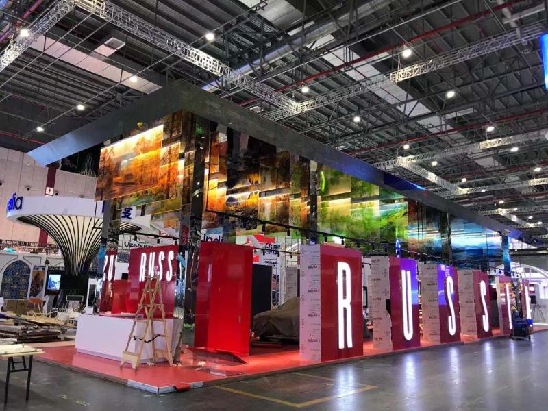 坐落于纵横两条主通道的路口,俄罗斯大大的“RUSSIA”字样非常醒目。在展会期间,参观者可以欣赏到俄罗斯的音乐佳作,感受令人心旷神怡的自然风光,了解最先进的科学技术成果,体会斯拉夫民族的社会文化生活。