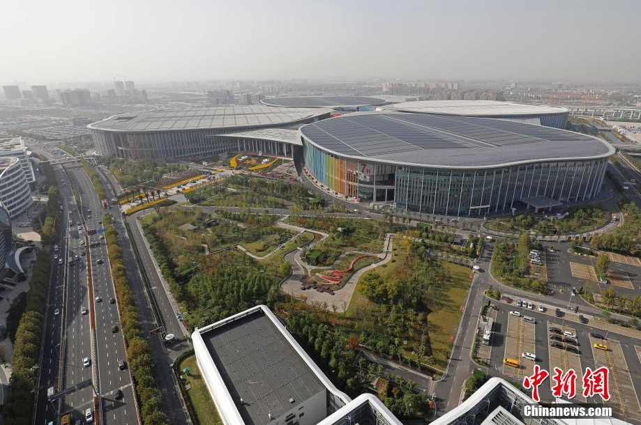 10月31日,航拍国家会展中心(上海)。第二届中国国际进口博览会将于11月5日至10日在国家会展中心(上海)举办。中新社记者 殷立勤 摄