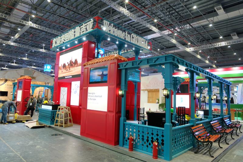 比如,格鲁吉亚国家展台设计灵感来源于格鲁吉亚传统建筑,呈现出独特的建筑风貌。