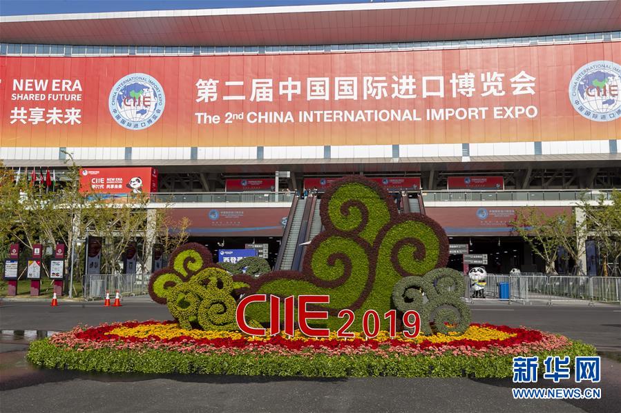 11月3日拍摄的国家会展中心(上海)西入口处的鲜花景观。新华社发(王翔摄)