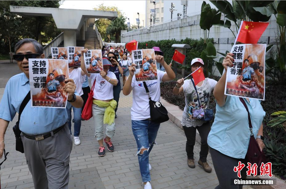 11月5日,香港民间团体“保卫香港运动”在香港警察总部举行游行集会,支持香港警察严正执法,继续对违法行为追究到底,尽快止暴制乱、恢复香港的秩序。图为香港市民不断高呼“支持警察”等口号,用行动来声援香港警察。中新社记者 谢光磊 摄