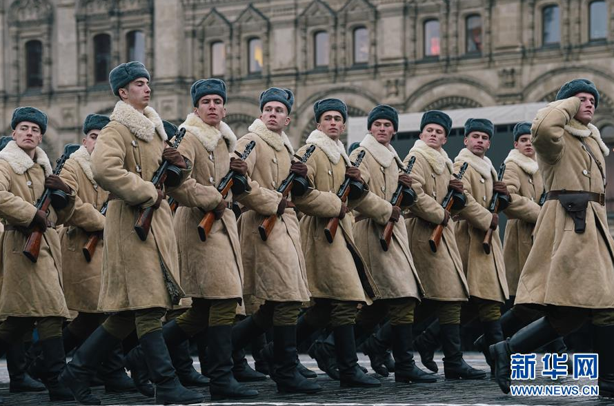 11月5日,士兵在俄罗斯莫斯科红场参加纪念1941年红场阅兵78周年彩排。 1941年11月7日举行的莫斯科红场阅兵式具有历史意义。当时,苏联正处于卫国战争最艰难阶段,纳粹德国军队兵临莫斯科城下。苏联士兵参加完红场大阅兵后,直接开赴几十公里外的莫斯科郊外与侵略者作战。 新华社发(西尼岑 摄)