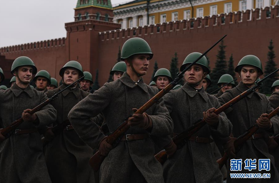 11月5日,士兵在俄罗斯莫斯科红场参加纪念1941年红场阅兵78周年彩排。 1941年11月7日举行的莫斯科红场阅兵式具有历史意义。当时,苏联正处于卫国战争最艰难阶段,纳粹德国军队兵临莫斯科城下。苏联士兵参加完红场大阅兵后,直接开赴几十公里外的莫斯科郊外与侵略者作战。 新华社发(西尼岑 摄)