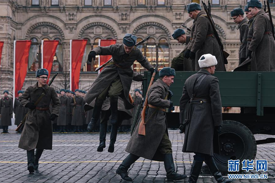 11月5日,士兵在俄罗斯莫斯科红场参加纪念1941年红场阅兵78周年彩排。 1941年11月7日举行的莫斯科红场阅兵式具有历史意义。当时,苏联正处于卫国战争最艰难阶段,纳粹德国军队兵临莫斯科城下。苏联士兵参加完红场大阅兵后,直接开赴几十公里外的莫斯科郊外与侵略者作战。 新华社发(西尼岑 摄)