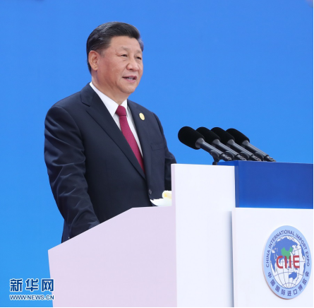 11月5日,第二届中国国际进口博览会在上海国家会展中心开幕。国家主席习近平出席开幕式并发表题为《开放合作 命运与共》的主旨演讲。新华社记者 鞠鹏 摄