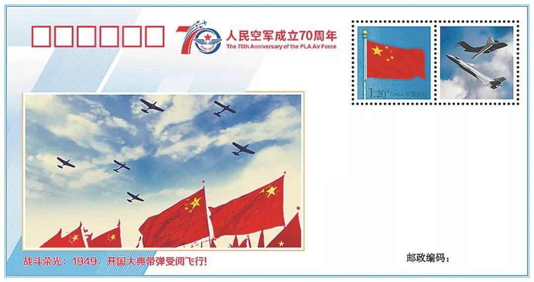 在人民空军成立70周年之际,空军发布一套100枚《我爱祖国的蓝天》强军主题纪念封,展现了不忘初心、奋飞向前的蓝天英姿。
