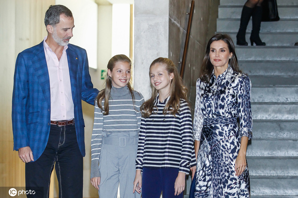 西班牙王室一家出席活动 公主姐妹高颜值大长腿太养眼