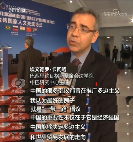 在巴西利亚,无论是多边会议,还是双边会晤,习主席几乎每次都提到多边主义。习主席在金砖国家领导人闭门会议上特别指出,要弘扬多边主义,其核心要义是,国际上的事应该由大家商量着办,不能由一国或少数几个国家说了算。习主席关于多边主义的论述,得到与会金砖国家领导人和各界人士的广泛认同。