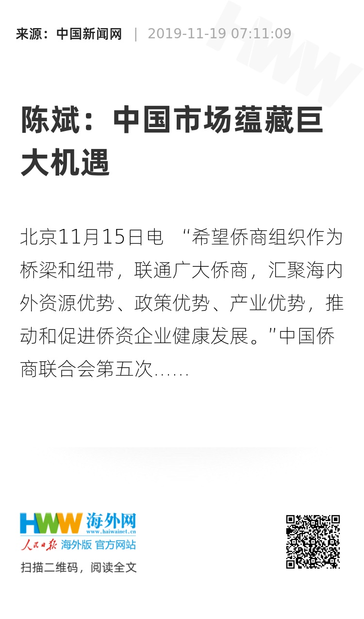 中新网北京11月15日电 “希望侨商组织作为桥梁和纽带,联通广大侨商,汇聚海内外资源优势、政策优势、产业优势,推动和促进侨资企业健康发展。”