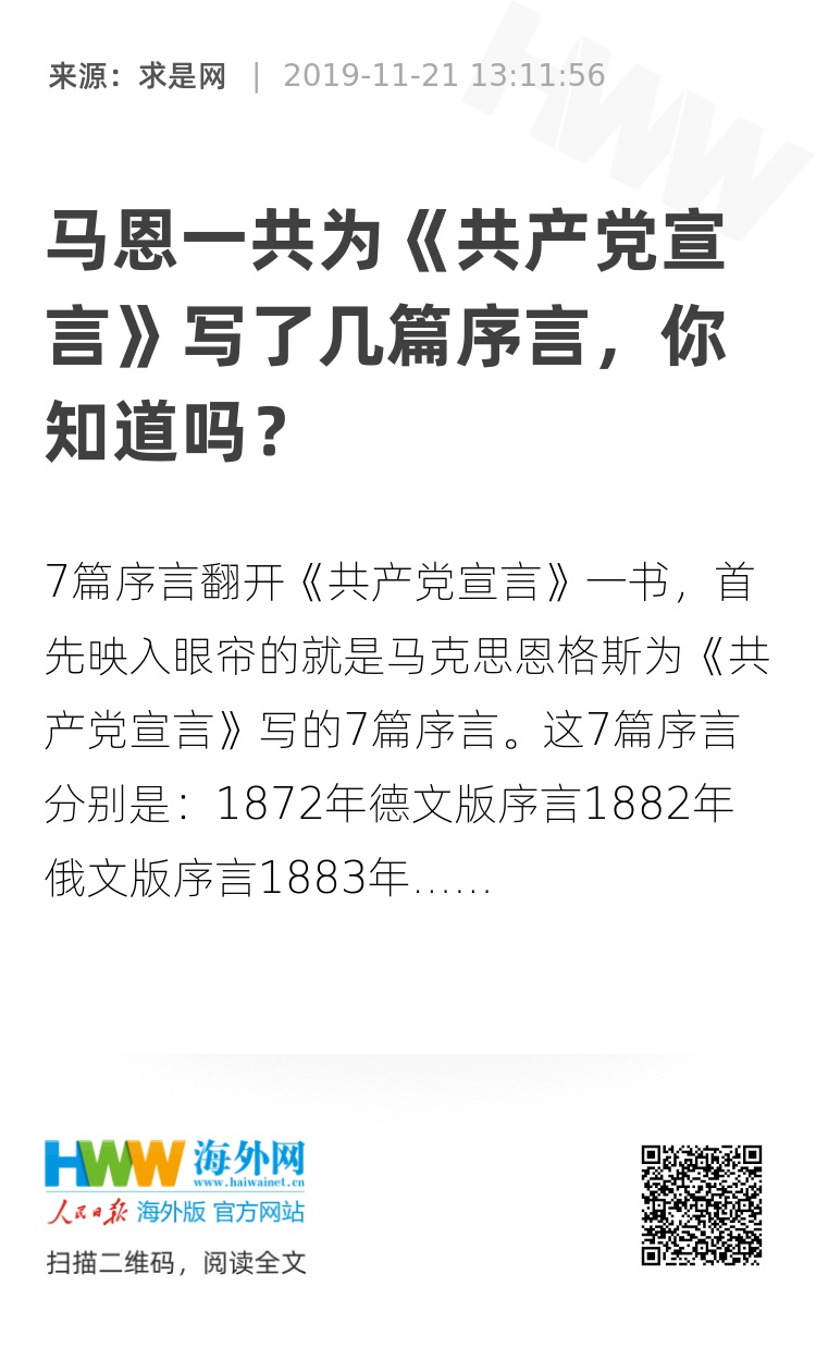 翻开《共产党宣言》一书,首先映入眼帘的就是马克思恩格斯为《共产党宣言》写的7篇序言。
