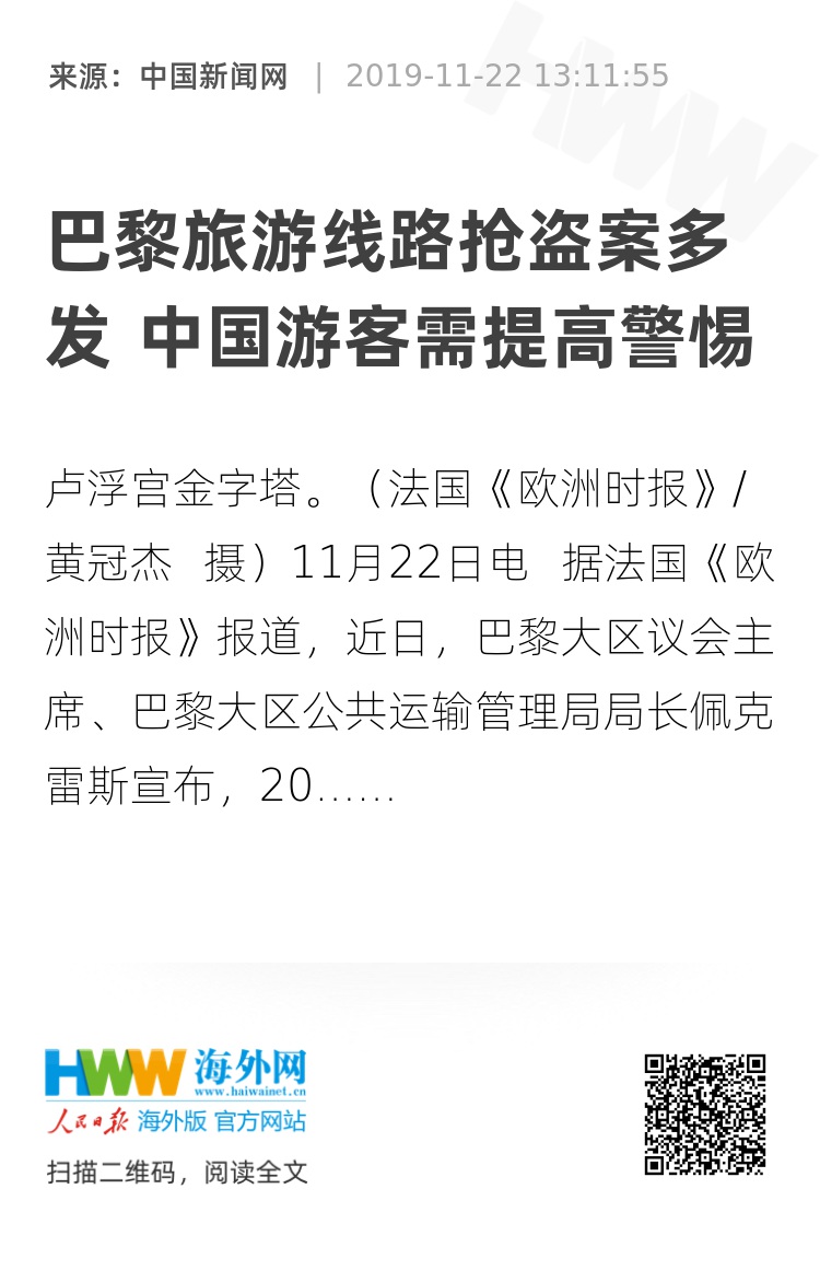 巴黎警察局长迪迪埃•拉勒芒(Didier Lallement)2019年10月公布最新巴黎街头暴力犯罪报告称,自2019年初以来,包括暴力抢劫在内的人身攻击案件发生了3.5万起,比2018年同比增加9%。非暴力偷窃案达18万起,同比增加13%。