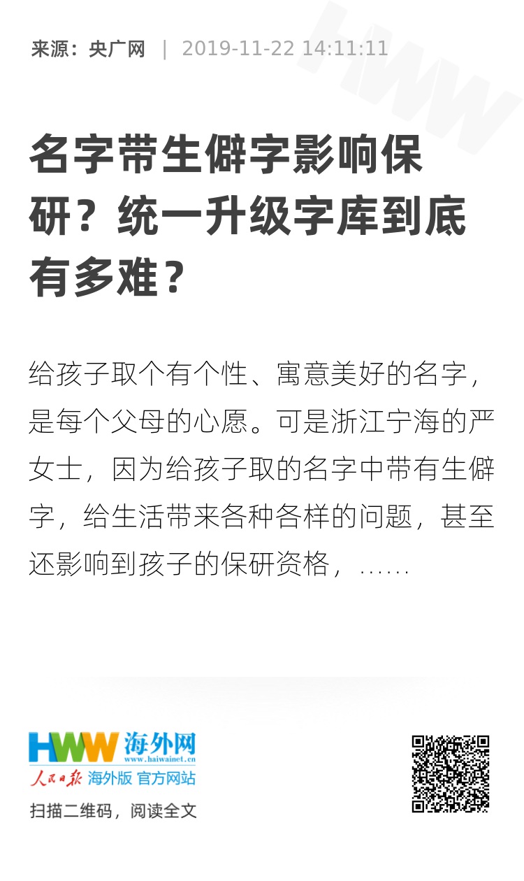 生活中有些不方便,严女士一家倒也没太放在心上,想着等有一天字库更新了,一切都能迎刃而解。直到今年,在上海念大四的女儿获得了学校的保研资格,当学校准备把她的资料报送“学信网”时,却遇到了更大的麻烦: