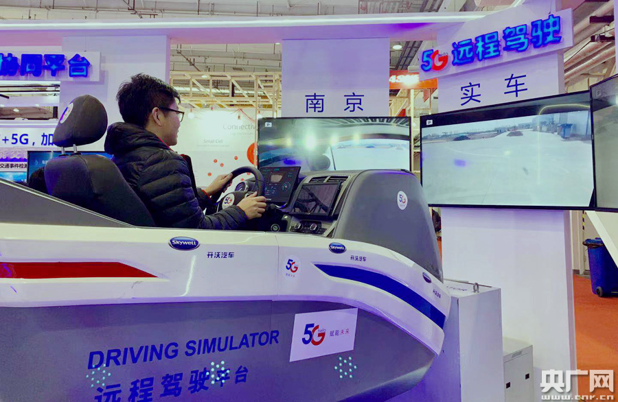 人在北京,车在南京,怎么开?在现场,一位参观者兴致勃勃地体验起5G远程驾驶,在南京的实车现场,他驾驶的汽车正在真真切切的行驶着。在世界5G大会上,多家运营商展出了5G远程驾驶场景。工作人员介绍,这种远程控制不仅可用于远程驾驶,更可用于抢险救灾、道路抢修等远程操作中。(央广网记者马文静 摄)