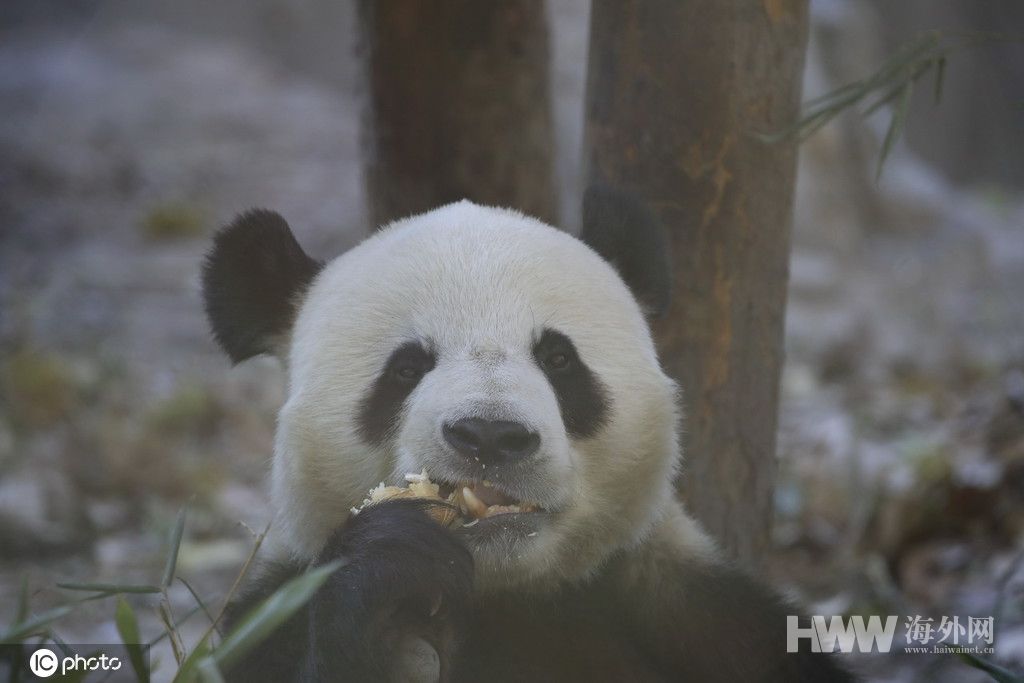 大熊猫冬日卖萌撒欢 吃着竹叶享暖阳