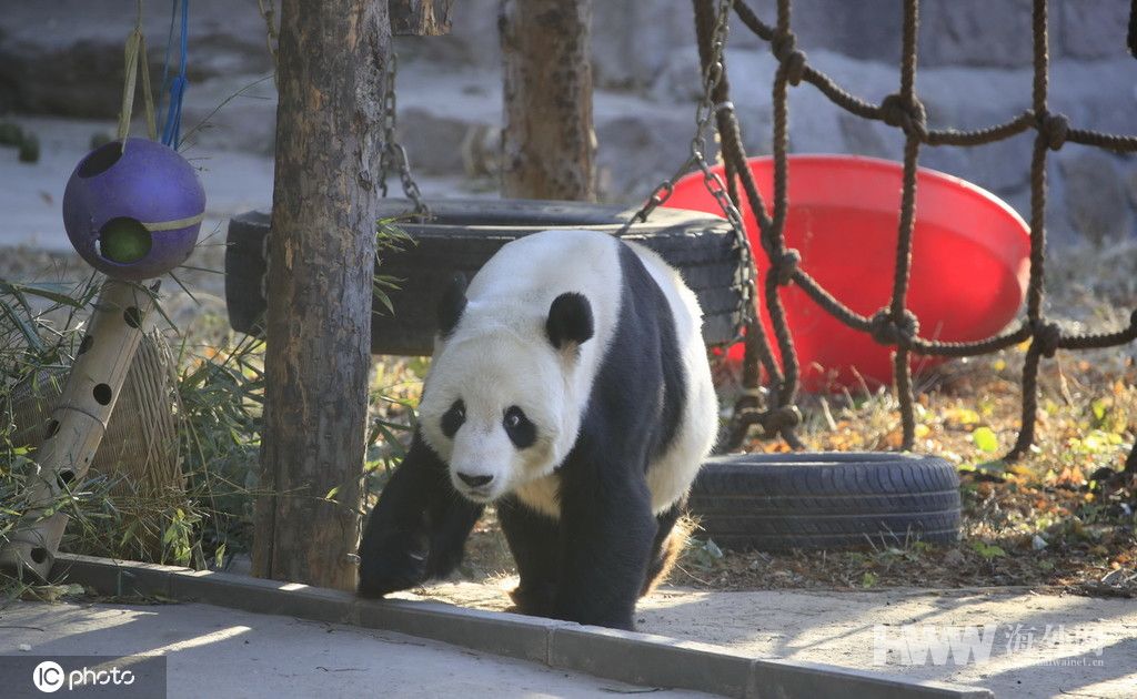 大熊猫冬日卖萌撒欢 吃着竹叶享暖阳