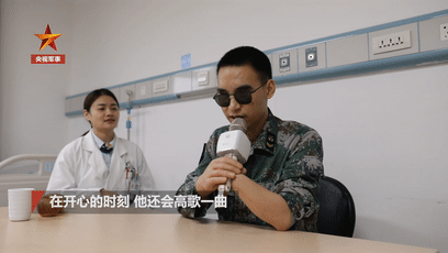 没有封闭自己,而是努力和世界保持联系。现在,他已经可以用平板电脑中的盲人提示系统,用微信和战友们联系了。