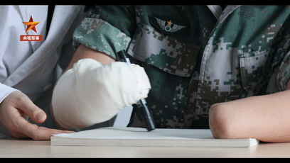 康复科主任刘宏亮回忆:刚来的时候,他的目标值和期望值很高,但现实是很残酷的。面对巨大的心理落差,杜富国只用了半个月就接受了现状,开始投入到康复训练中……