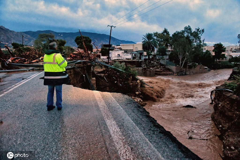 希腊西部遭暴风雷雨天气引发洪灾 大片地区被水淹