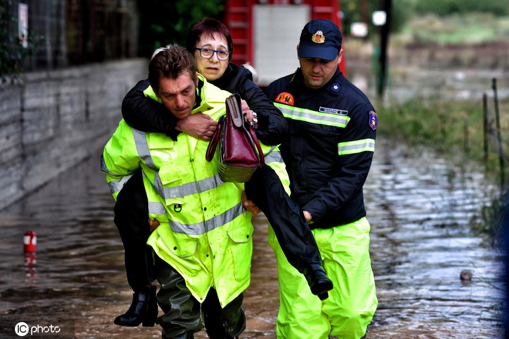 当地时间2019年11月25日,希腊西部近日遭到雷雨风暴天气,据报道,这场暴风雨还带来水灾,并导致交通中断,大片地区被水淹。图源:东方IC