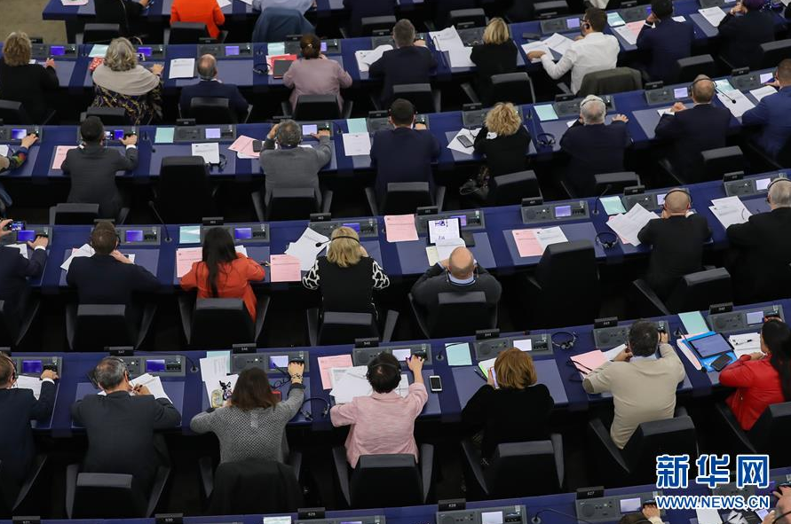 11月27日,在法国斯特拉斯堡欧洲议会总部,欧洲议会议员投票表决。欧洲议会27日在法国斯特拉斯堡投票通过了以乌尔苏拉·冯德莱恩为主席的新一届欧盟委员会(欧委会)委员名单,为新一届欧委会就职铺平了道路。 新华社记者 张铖 摄