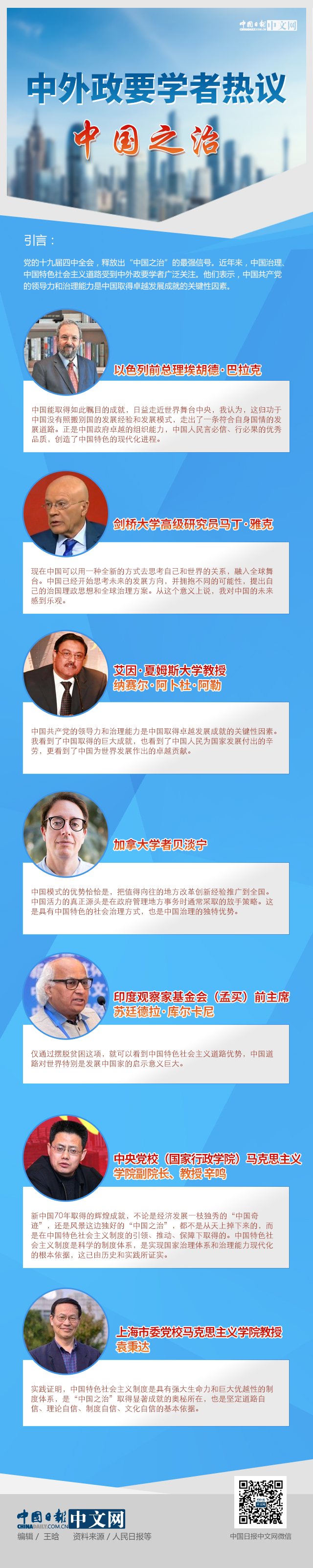 编者按:党的十九届四中全会,释放出“中国之治”的最强信号。近年来,中国治理、 中国特色社会主义道路受到中外政要学者广泛关注。他们表示,中国共产党 的领导力和治理能力是中国取得卓越发展成就的关键性因素。