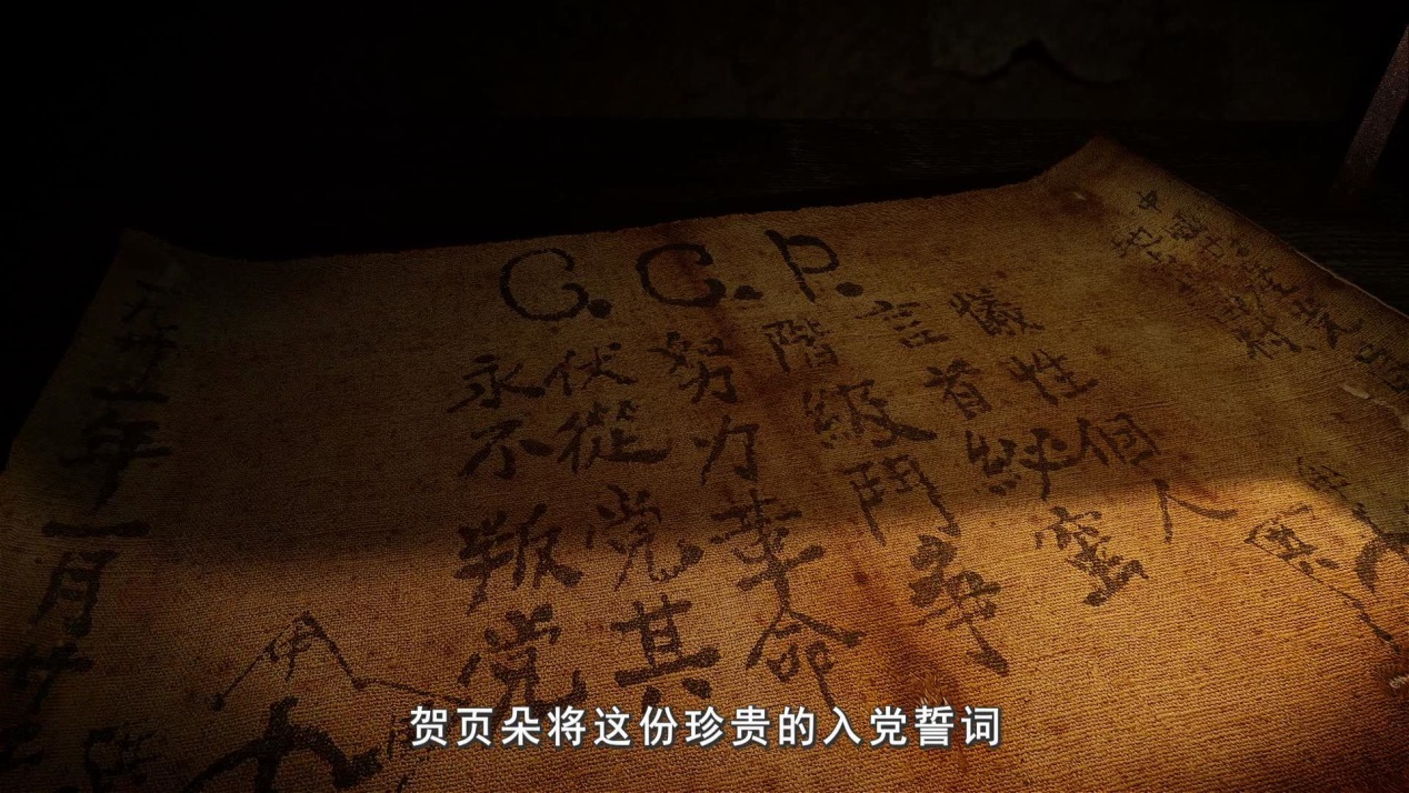 1934年,贺页朵在一次伏击战中负了重伤。红军长征后,他留下来坚持斗争,后来在国民党的白色恐怖下与党组织失去了联系。在之后的漫长岁月里,他冒着生命危险将写有入党誓词的布条用油纸包好,藏在榨油坊的屋檐下。