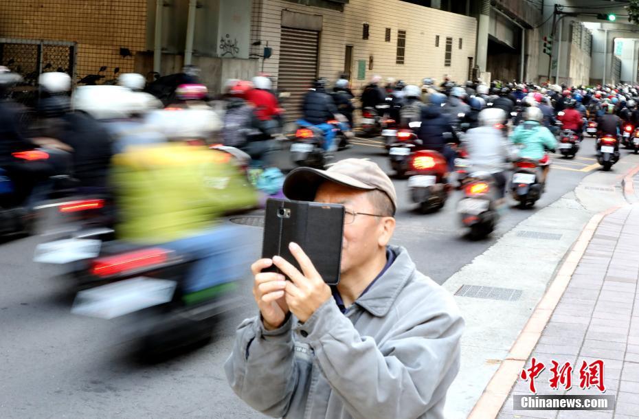 12月3日,位于台北市西部台北桥上的“机车大军”吸引了众多游客、媒体拍摄。在台湾,摩托车通常被称作“机车”,因为方便快捷且可躲避道路拥挤,民众喜欢用机车代步,同时它也是台湾影视剧中的长青“主角”。每逢工作日的清晨,连接新北台北两市的枢纽台北桥马达轰鸣、喇叭震耳,“万车齐发”的场面甚为壮观,“机车瀑布”由此得名,近来已成为游客、市民“打卡”的特殊景观。据台湾交通部门统计,全台有1380多万辆机车,平均每100人拥有92.5辆。中新社记者 史元丰 摄