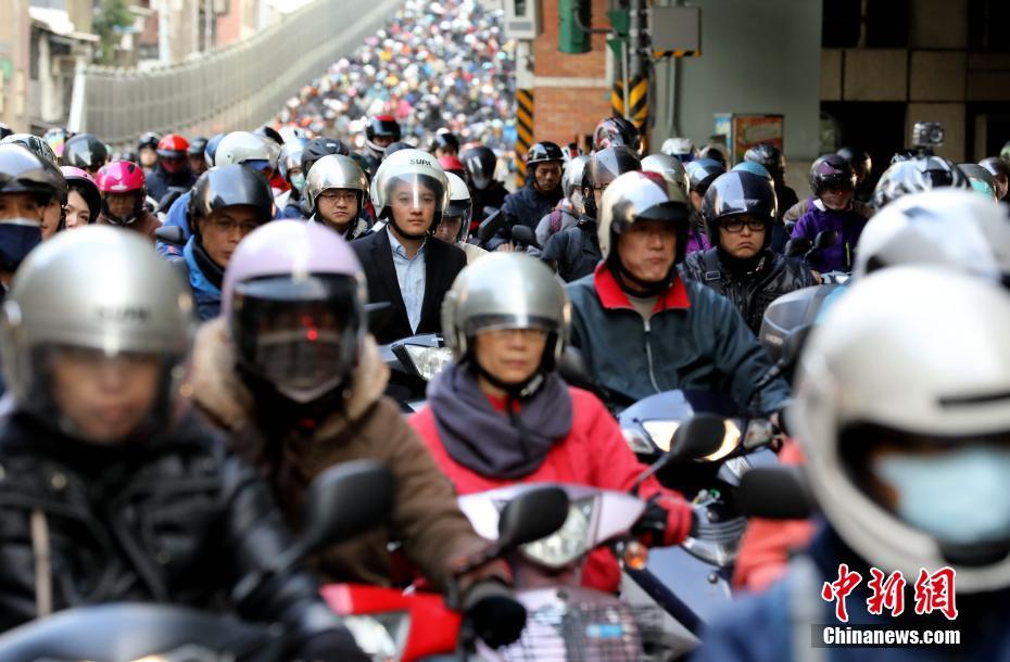 12月3日,台北桥上的“机车大军”形形色色,西装笔挺的“白领”也在其中。在台湾,摩托车通常被称作“机车”,因为方便快捷且可躲避道路拥挤,民众喜欢用机车代步,同时它也是台湾影视剧中的长青“主角”。每逢工作日的清晨,连接新北台北两市的枢纽台北桥马达轰鸣、喇叭震耳,“万车齐发”的场面甚为壮观,“机车瀑布”由此得名,近来已成为游客、市民“打卡”的特殊景观。据台湾交通部门统计,全台有1380多万辆机车,平均每100人拥有92.5辆。中新社记者 史元丰 摄