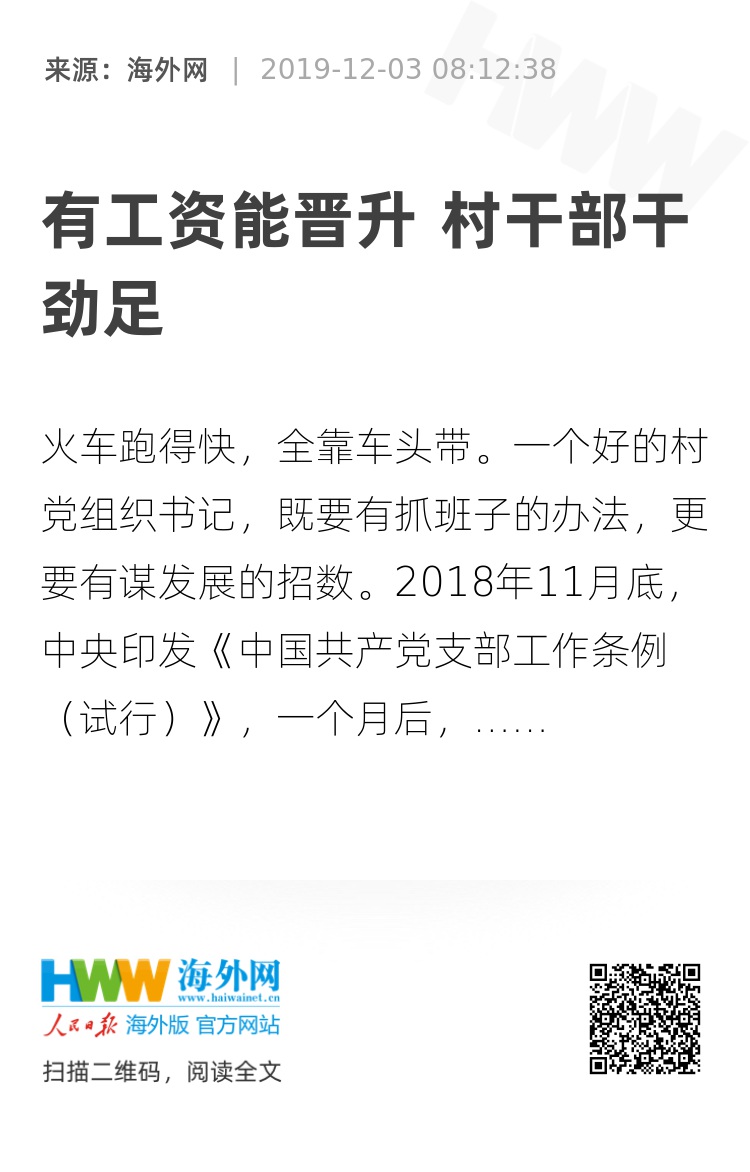 “农民身份、进步空间小、保障偏低,导致农村留不住优秀人才的问题比较突出。”邯郸市委常委、组织部部长张才说,“我们就是要适应新时代要求,从创制入手,变补贴制为工资制,变半工半农为专职化,并为农村党组织书记办理养老保险、医疗保险和人身意外伤害保险,从制度和根子上解决农村干部队伍活力问题。”