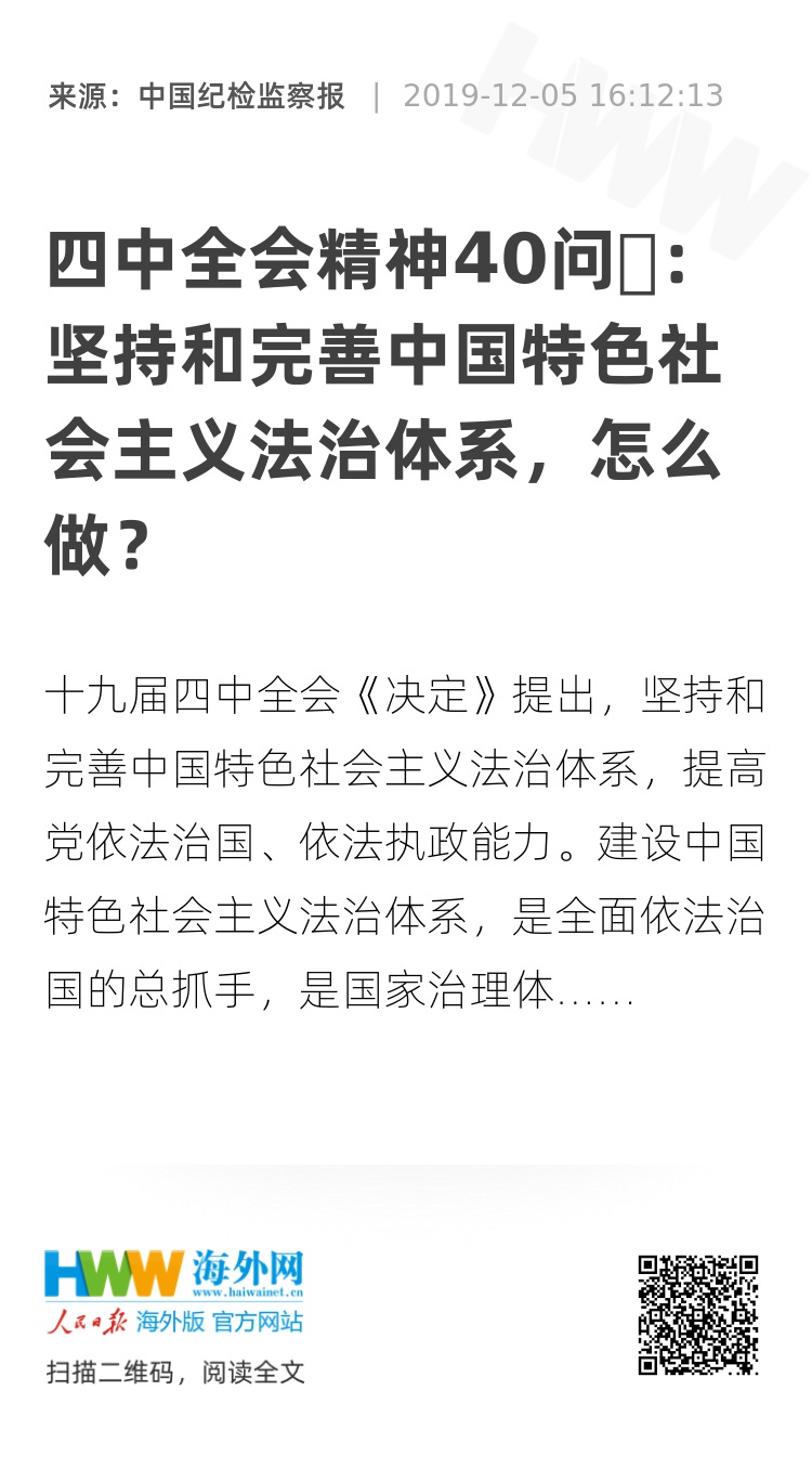 十九届四中全会《决定》提出,坚持和完善中国特色社会主义法治体系,提高党依法治国、依法执政能力。