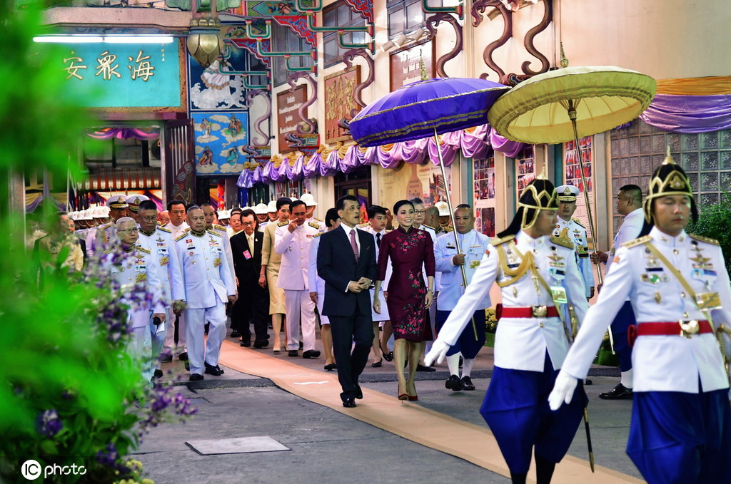 泰国国王夫妇巡视曼谷唐人街 苏提达王后穿旗袍