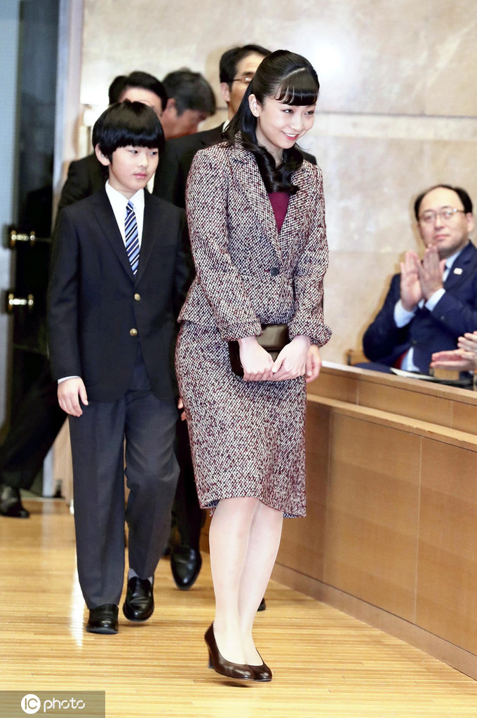 当时时间2019年12月8日,日本东京,日本小王子悠仁和被喻为“日本最美公主”的佳子,一起出席了在东京涉谷举行的第41届“少年的主张”全国大会,这是悠仁首次代表皇室出席公开活动。图源:东方IC
