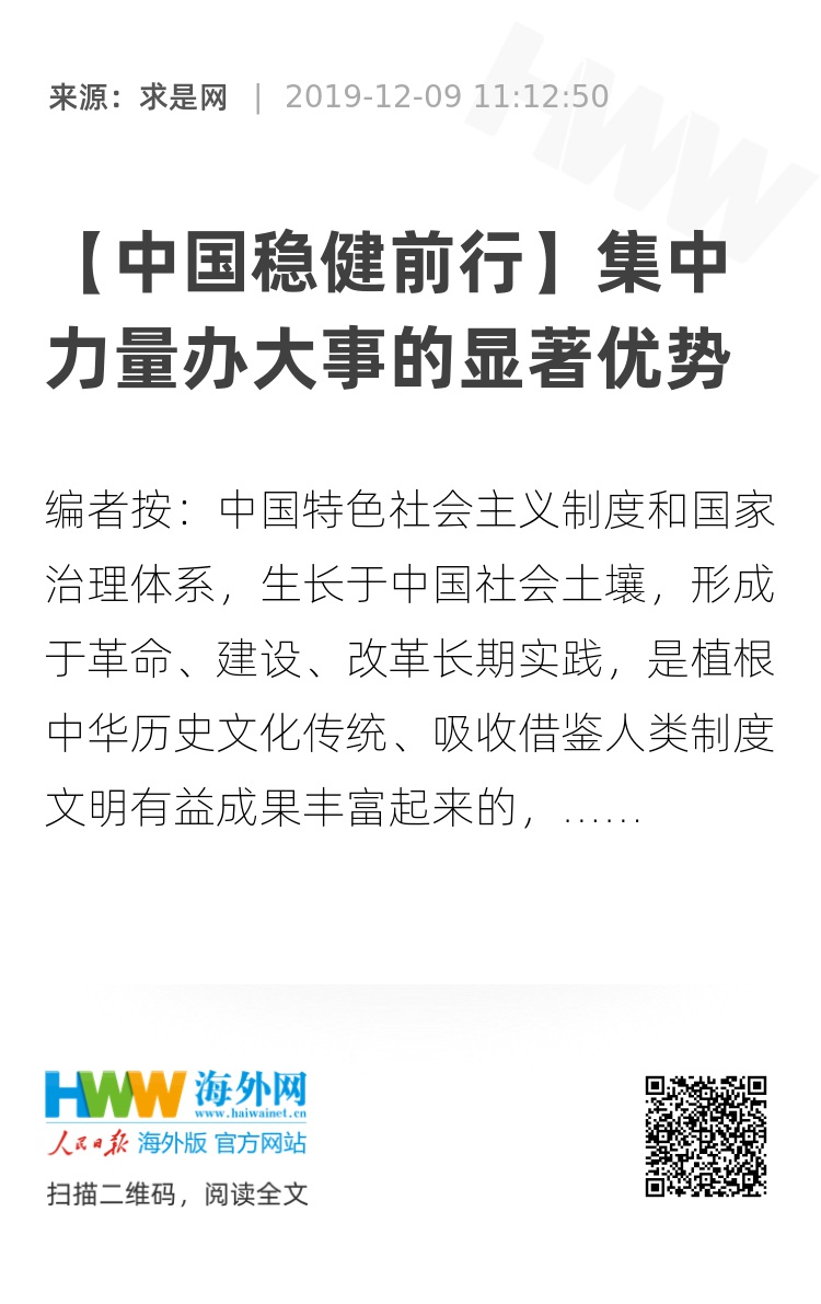 编者按:中国特色社会主义制度和国家治理体系,生长于中国社会土壤,形成于革命、建设、改革长期实践,是植根中华历史文化传统、吸收借鉴人类制度文明有益成果丰富起来的,不仅保障了我国经济快速发展和社会长期稳定的奇迹,也为多元文明共生并进的人类社会发展增添更多色调、更多范式、更多选择。党的十九届四中全会通过的《中共中央关于坚持和完善中国特色社会主义制度、推进国家治理体系和治理能力现代化若干重大问题的决定》,从13个方面系统总结和深刻阐述了我国国家制度和国家治理体系的显著优势,紧紧围绕“坚持和巩固什么” “完善和发展什么”,提出了一系列新思想新观点新举措,提出了把新时代改革开放推向前进的根本要求,是我们坚定“四个自信”的基本依据。为深入学习宣传党的十九届四中全会精神,中央网信办与求是杂志社共同组织“中国稳健前行”网上理论传播专栏,邀请思想理论界专家学者撰写系列理论文章,今天在求是网推出第8篇,敬请关注。