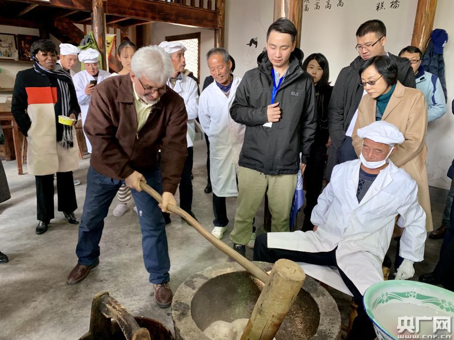 8日下午,大巴车穿过美丽的西湖景区,来到杭州考察的第一站——坐落在绵延的茶山下的外桐坞村。与会代表们参观农村文化礼堂、村里的艺术家工作室,体验打年糕、写福字。这座宁静古朴又充满艺术气息的村庄,吸引外宾们不时掏出手机拍照留念。马达加斯加参议院副议长库鲁·克里斯托夫·洛朗·罗杰2014年曾经来过杭州,但近距离感受杭州居民的生活还是第一次,他对中国坚持以人民为中心的人权理念大加赞赏,“在这里人是中心,村民们相互友爱,关系亲近,不是疏离、疏远的,这是我们发展中最核心的人性的部分,也是不能丢失的部分。”