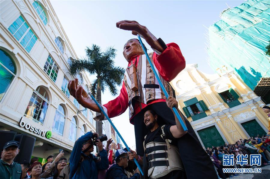 新华社澳门12月8日电(记者王晨曦)2019澳门国际幻彩大巡游8日下午在澳门举行,来自“一带一路”沿线国家和地区的艺术团体与澳门的艺术家们共同参与,欢庆澳门回归祖国20周年。本次大巡游由澳门特区政府文化局主办,主题为“一带一路”沿线国家和地区文化。参加的艺术团体来自乌克兰、波兰、意大利等16个“一带一路”沿线的国家和地区。澳门的巡游团队也根据“一带一路”国家地区的文化特色或故事创作表演内容。12月8日,庆祝澳门回归祖国二十周年“2019澳门国际幻彩大巡游”举行。 新华社记者 张金加 摄