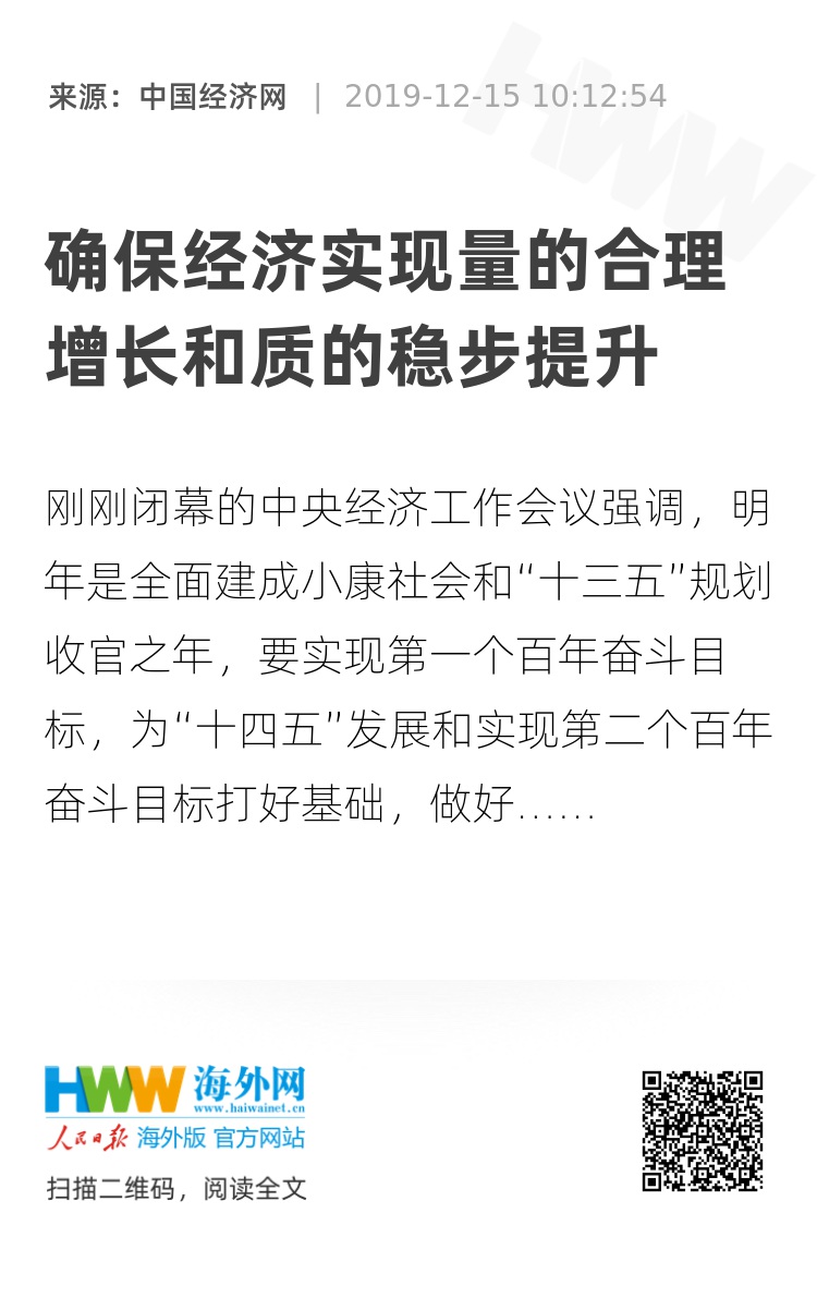刚刚闭幕的中央经济工作会议强调,明年是全面建成小康社会和“十三五”规划收官之年,要实现第一个百年奋斗目标,为“十四五”发展和实现第二个百年奋斗目标打好基础,做好经济工作十分重要。