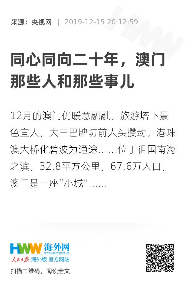 12月的澳门仍暖意融融,旅游塔下景色宜人,大三巴牌坊前人头攒动,港珠澳大桥化碧波为通途……位于祖国南海之滨,32.8平方公里,67.6万人口,澳门是一座“小城”。20年来,这座“莲花”小城走得坚实笃定,一步步踏实向前,成为经济繁荣、文化多元的国际知名都市,创造了举世瞩目的奇迹。