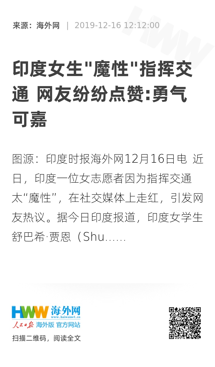海外网12月16日电 近日,印度一位女志愿者因为指挥交通太“魔性”,在社交媒体上走红,引发网友热议。