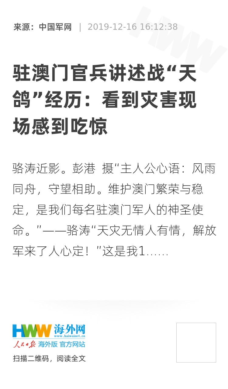 那一刻,我脑海里瞬间浮现出汶川特大地震发生后解放军到来的场景。我知道,在澳门同胞需要的时候出现在这里,是我们的责任所在。