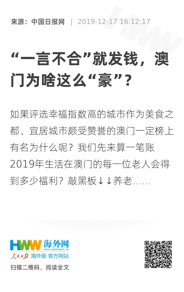 那么,回归祖国怀抱20年的澳门,到底为什么这么“豪”?或许何厚铧的这句话给出了最好的回答!