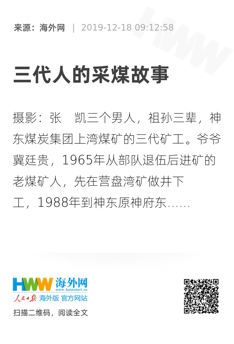 三个男人,祖孙三辈,神东煤炭集团上湾煤矿的三代矿工。
