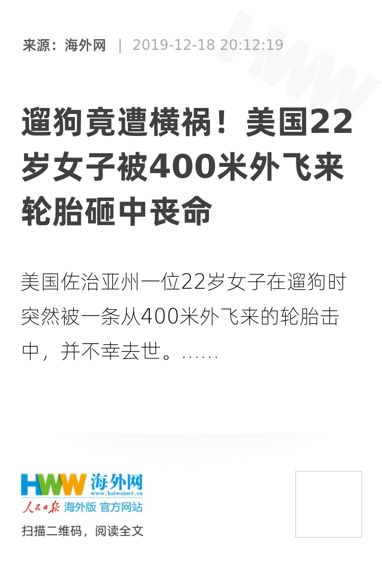 海外网12月18日电 当地时间上周日(15日),美国佐治亚州一位名为金伯莉·塔诗顿(Kimberly Touchton)的22岁女子在遛狗时突然被一条从远处飞来的轮胎击中,并不幸去世。目前,缺失轮胎卡车的司机已经被警方逮捕,并将面临相关指控。