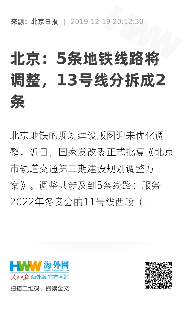 原标题:《北京地铁规划再修订,5条线调整,今明两年全开工!》