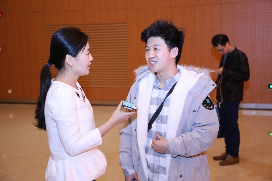 北京城市学院新闻专业学生宋明表示,观看获奖短视频不仅让他眼界大开,也让他学习到很多。(谢明/摄)