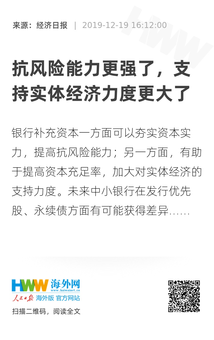 银行补充资本一方面可以夯实资本实力,提高抗风险能力;另一方面,有助于提高资本充足率,加大对实体经济的支持力度。未来中小银行在发行优先股、永续债方面有可能获得差异化政策支持——